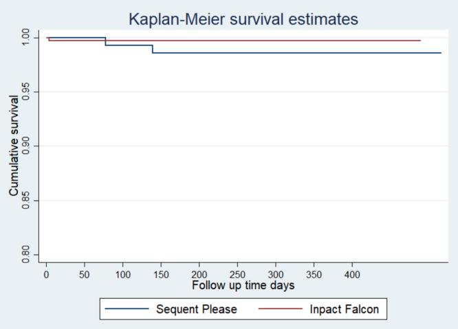 共有496例患者的623处病变纳入研究,其中144处病变接受SeQuent Please治疗,352处病变接受In.Pact Falcon治疗。两组间基线患者、病变和手术特征相似。在12个月随访时,3点主要不良心血管事件结局相似(分别为4.2%和2.3%;P = 0.272)。心血管事件导致的死亡很少,且两组间相似(分别为2.7%和1.1%;P = 0.20)。
