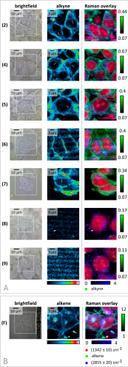 胆固醇是一种重要的脂质,在介导基本细胞过程以及维持生物膜的基本结构完整性方面发挥着关键作用。鉴于其巨大的生物学重要性,对研究胆固醇介导的生物过程的复杂策略的需求一直未减。拉曼标记的甾醇类似物具有无需庞大染料即可可视化的优势,而许多传统使用的荧光类似物的染料可能会影响天然膜整合和细胞相互作用。在此,我们报告了一系列具有大拉曼散射截面的炔基标记的基于咪唑鎓的胆固醇类似物(CHIMs),它们易于整合到HEK细胞和原代单核细胞衍生的巨噬细胞中,并允许(多重)细胞拉曼成像。我们设想拉曼标记的CHIM类似物将成为一个强大的平台,用于研究与其他既定方法(如使用荧光类似物)互补的胆固醇介导的细胞过程。
