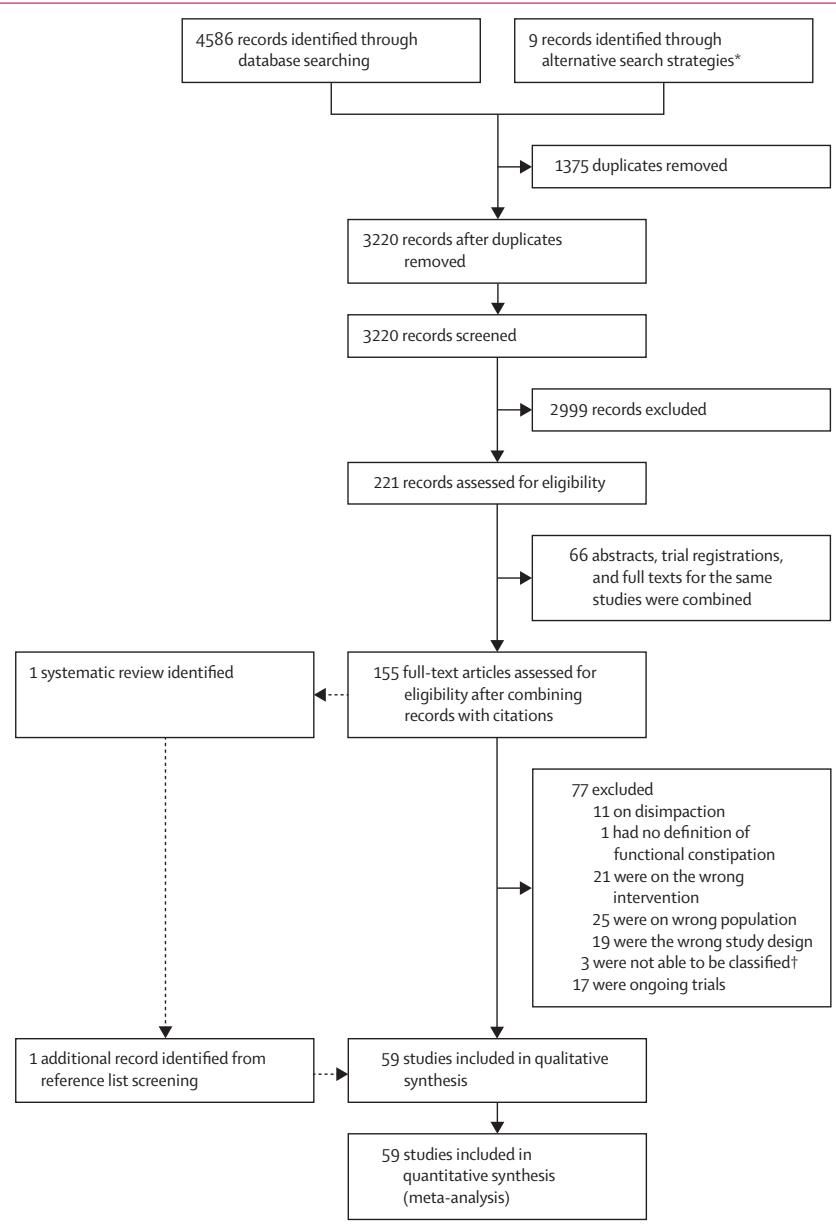在这项研究中,一个令人震惊的数字反差揭示了儿科便秘研究领域的深层危机。研究团队起初在各大数据库中检索到了 4595 篇相关文献,这是一个庞大的数字,似乎预示着该领域研究的繁荣。