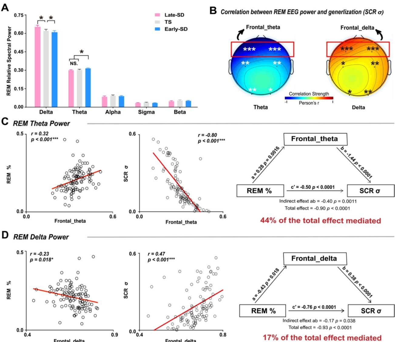 如果说DLPFC是醒来后控制恐惧的“指挥官”,那么在睡梦中,又是谁在负责具体的“修缮工程”呢?为了探究这一微观机制,研究团队进一步分析了睡眠期间的脑电图(EEG)数据。