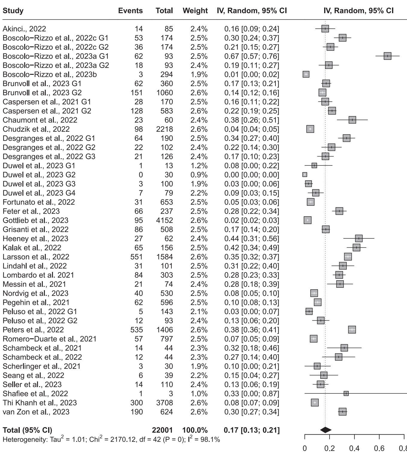 从图[2]中我们可以直观地看到这项统计结果。这张图表(学术上称为“森林图”)汇总了数十项不同研究的数据。虽然每项研究因为调查的人群、地区不同,结果(图中的小方块)有些波动,但整体的汇总结果(最下方的菱形图标)明确地指向了一个结论:这种感官的丧失是普遍存在的,并非个例。